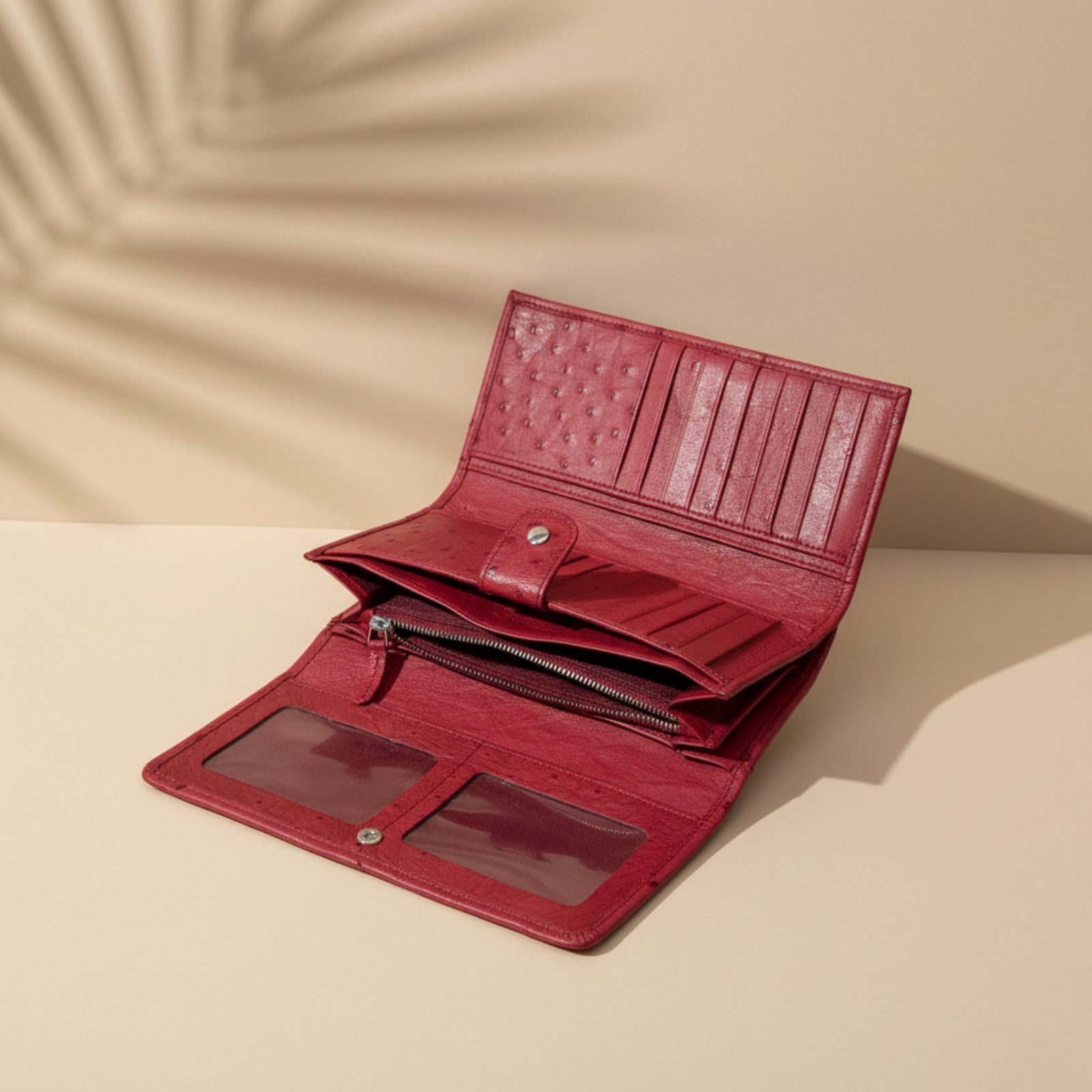Gefertigt aus feinstem, echtem Straußenleder – unverwechselbar in Struktur und Griff.