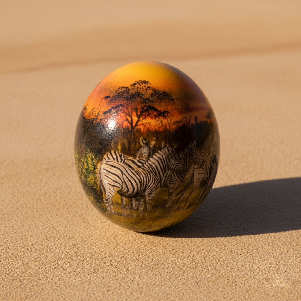 Original Straußenei – Decoupage "Zebraherde"